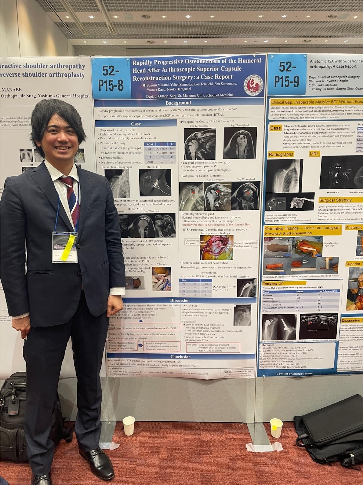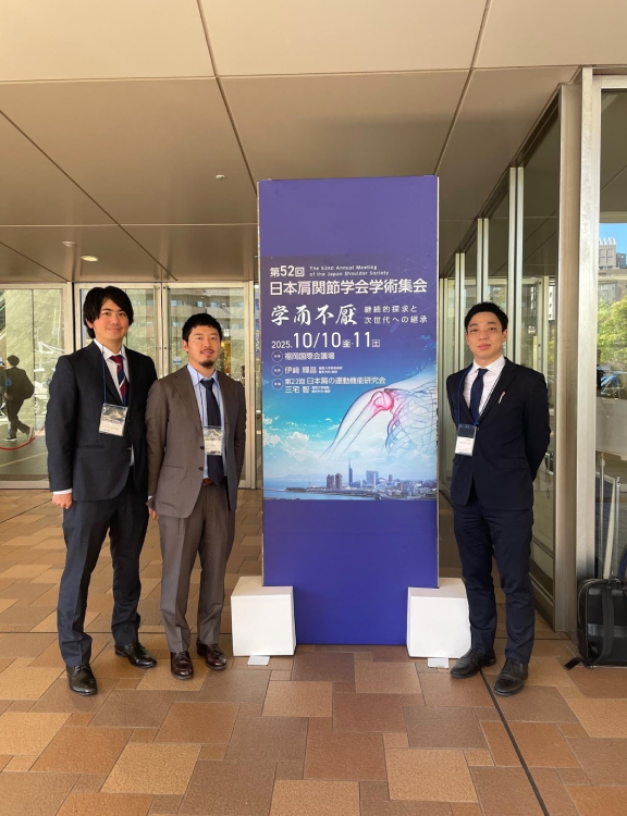 本学会は、肩関節外科分野における国内最高峰の学術集会であり、発表内容・質疑応答ともに非常にレベルが高く、臨床・研究の両面で多くの刺激を受けました。日常診療で感じる疑問が最先端の知見として議論されており、改めて肩関節外科の奥深さと進歩の速さを実感いたしました。